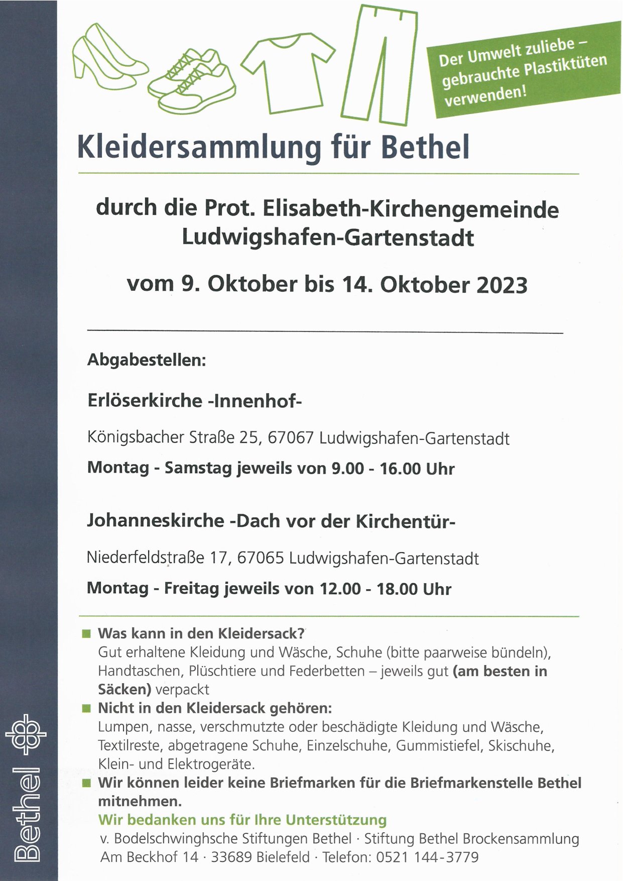 Auch in diesem Jahr wird wieder für Bethel gesammelt. Was, wann, wo gesammelt wird, können Sie --> hier <-- lesen.